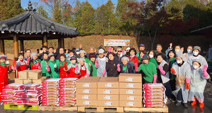 특히 올해는 농업경영인, 농촌지도자, 쌀전업농연구회, 오이협의회 등 농업단체 회원들이 함께해 더욱 뜻깊은 김장행사가 됐다.