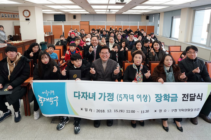 [로컬세계 임종환 기자]서울 동대문구는 지난15일 구청 기획상황실에서 ‘다자녀가정(5자녀 이상) 장학금 전달식’을 가졌다.