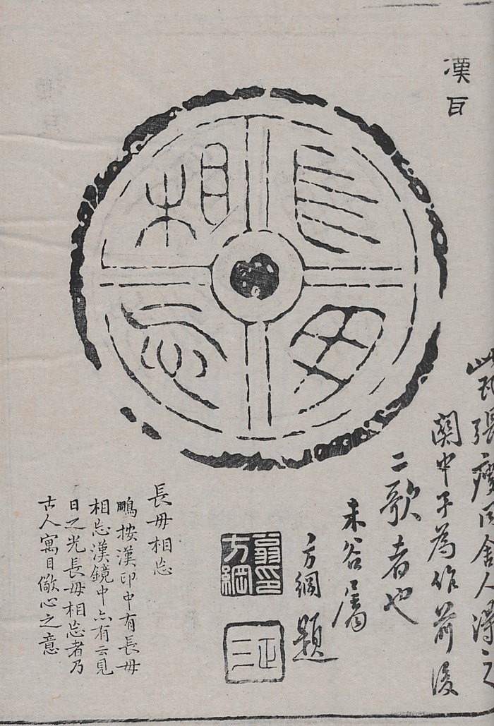 ‘장무상망’은 중국 한나라 기와에 새겨 전해진 고어로 ‘오래도록 서로 잊지 말자’라는 뜻이다. 추사 김정희가 본인이 그린 세한도(歲寒圖, 국보 180호)에 인장으로 찍은 문구이기도 하다.