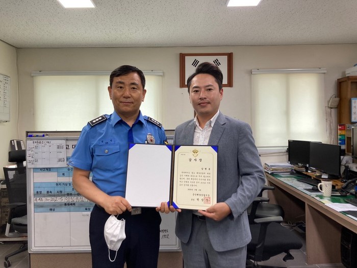[로컬세계 양해수 기자]맨몸으로 바다에 뛰어들어 익수자를 구조한 시민에게 군산해경이 감사장을 전달했다.