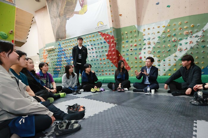 [로컬세계=김병민 기자]이상일 용인특례시장이 지난 29일 수지구 풍덕천동에 있는 아르피아 클라이밍센터에서 지역의 청년들과 진솔한 대화를 나눴다.