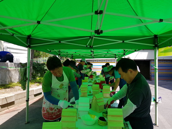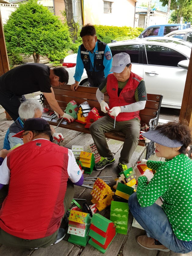 주민자치위원들은 황연동 직원들과 함께 새집 만들기와 색칠하기, 달아주기까지 한 달여 동안 구슬땀을 흘리며 휴거리 조성에 앞장섰다.