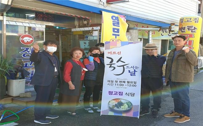 이날 행사는 정고집 식당을 운영하는 구자화‧정원수 부부의 후원으로 개최됐으며, 앞으로 매월 첫 번째 월요일 장성동 관내 경로당별 어르신을 모시고 따뜻한 국수(하절기 동치미 국수)를 대접할 계획이다.