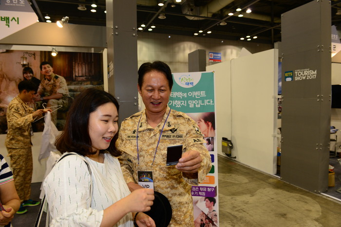 김연식 시장은 지난 6월에도 북경 국제 관광 박람회에 참가해 태백시를 알렸다. 이번에도 직접 박람회장에서 드라마 ‘태양의 후예’의 우르크 태백부대 군복을 입고 드라마 촬영지 태백을 홍보하고 있다.