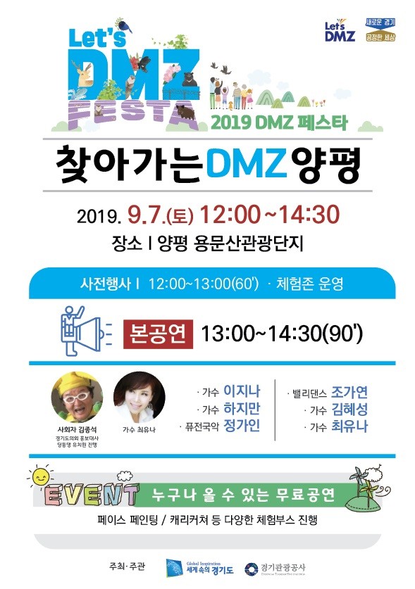 [로컬세계 이혁중 기자]Let’s DMZ 2019 'DMZ 페스타'의 사전행사 일환인 '찾아가는 DMZ' 1탄 광명시 편이 지난 1일 성황리에 개최된 데 이어 두 번째 '찾아가는 DMZ'가 오는 7일 양평군 용문산관광단지에서 개최된다.