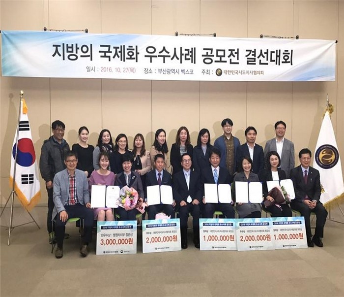 지난달 27일 부산 벡스코에서 열린 이번 행사는 대한민국시도지사협의회가 전국 243개 지방자치단체를 대상으로 지방자치단체의 국제화 우수사례를 공모하여 국제화에 대한 관심도를 높이고 자치단체 상호간 정보를 공유 할 수 있는 기회를 제공하고자 개최되었다.