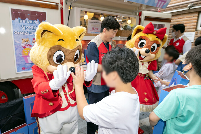 ▲롯데월드 대표 캐릭터 ‘로티, 로리’가 아이스크림 선물 전달하러 왔어요! |