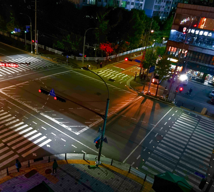 | ▲역북동 행정복지센터 입구 사거리에 설치된 활주로형 LED 횡단보도. |