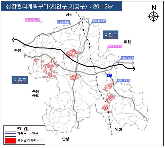 | ▲처인, 기흥구 15개 지역 20.12㎢ 성장관리계획 구역도 |