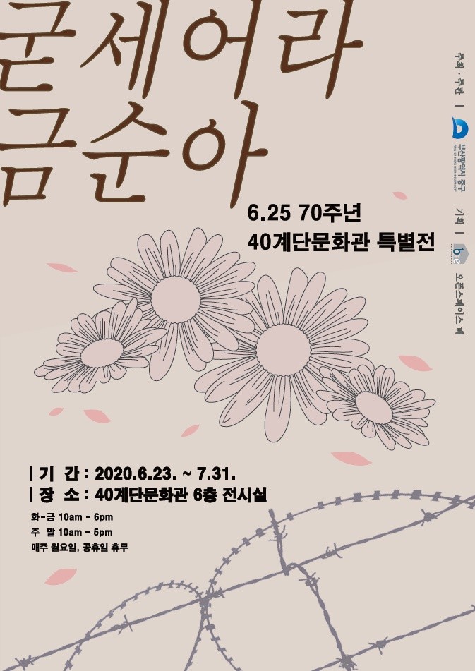 [로컬세계 맹화찬 기자]부산 중구(구청장 최진봉) 40계단문화관은 6.25전쟁 70주년을 맞이해 오는 23일부터 7월 31일까지 40계단문화관 6층 전시실에서 '굳세어라금순아'라는 주제로 특별전을 개최한다.