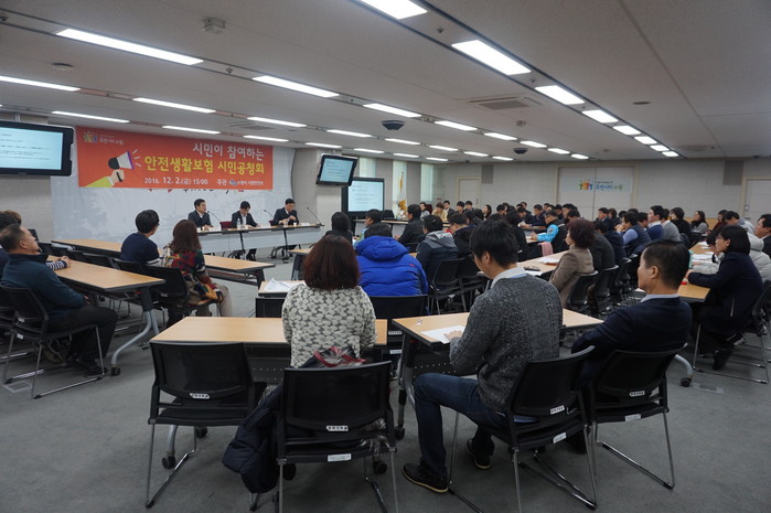 시민안전보험 도입을 검토하고 있는 수원시가 2일 수원시청에서 ‘시민이 참여하는 안전생활보험 시민공청회’를 열어 ‘시민안전보험’을 알리고 도입에 대한 시민들의 의견을 들었다.
