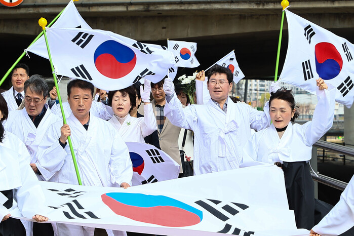 머내여지도, 동천마을네트워크, 고기동마을네트워크가 주관한 이날 행사에는 이 시장을 비롯해 독립유공자 후손과 시민 등 150여 명이 참여해 태극기 물결을 수놓았다.