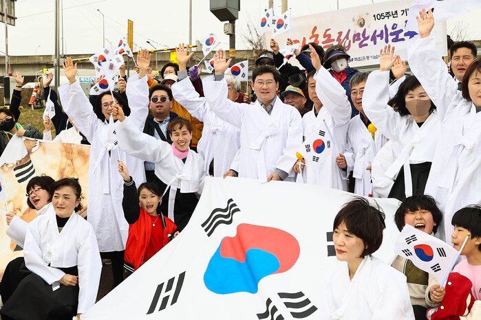 [로컬세계=김병민 기자]이상일 용인특례시장은 지난 30일 3·1운동을 기념해 지역 곳곳에서 열린 만세운동 기념행사에 참여해 호국선열의 희생정신을 기렸다.
