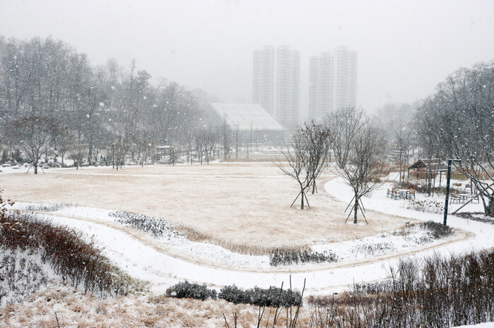 ▲ 영통구에 새로 개장한 영흥숲공원의 설경. |