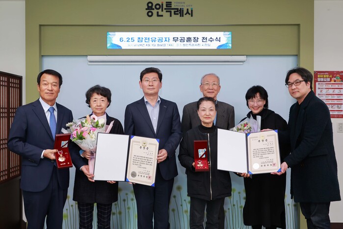 [로컬세계=김병민 기자]경기 용인특례시는 지난 1일 6‧25 참전유공자 고(故) 강원형 상병과 故이계안 병장 유족에게 화랑무공훈장을 전수했다.