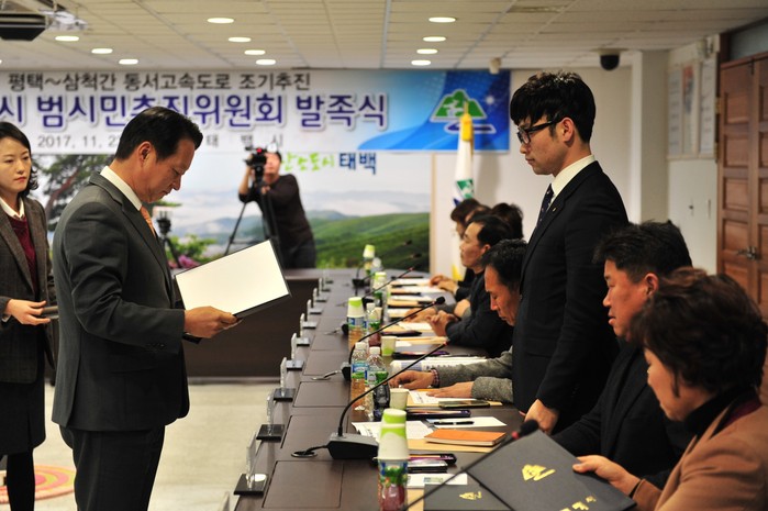 김연식 태백시장을 비롯해 범시민추진위원회 위원 22명이 이날 한자리에 모여, 동서고속도로 추진경과 보고와 위촉장 수여식을 갖고 사업 조기 추진을 위한 본격적인 행보에 나선다.