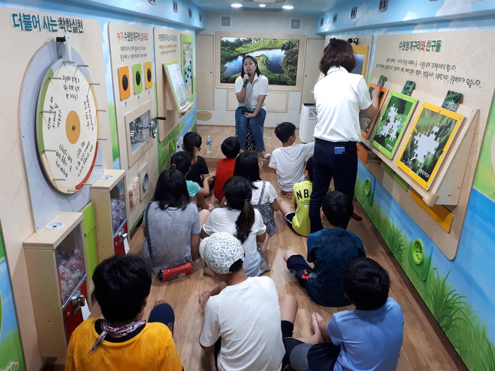 지난해 3월 시작한 찾아가는 수원이 환경교실은 체험 중심 환경 교육을 할 수 있도록 특수제작한 이동 환경교실 버스(1대)에서 진행된다.