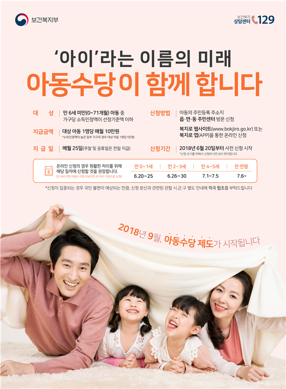 시 관계자는 “신청이 초기에 집중되어 혼잡이 되는 것을 방지하기 위해 연령별로 집중 신청기간을 설정해 운영할 계획”이라며, “오늘부터 9월 28일까지 기간 중에는 언제 신청하더라도 9월분 급여부터 지급되므로 아동 출생연도 별 집중 신청기간에 신청하시기를 권장한다”고 말했다.