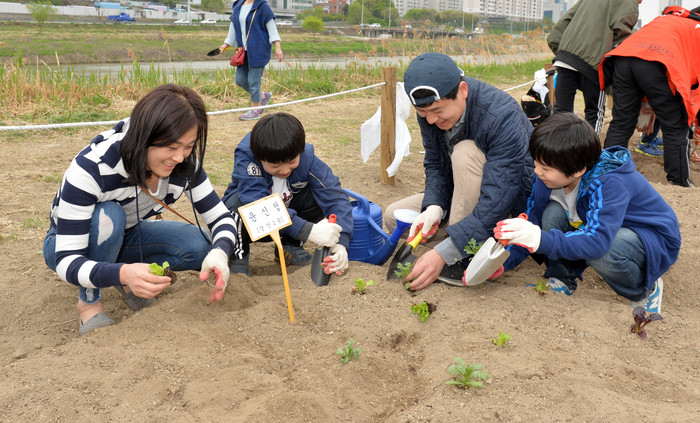 2013년 개장한 중랑천 ‘도시농업 체험학습장’은 친환경 재배 농법으로 안전한 먹을거리를 생산하고 도시농업 활성화에 기여하고자 시작된 사업이다. 올해 중랑천 둔치 장안교부터 제2체육공원까지의 부지에 약 4000㎡ 규모로 조성됐다.
