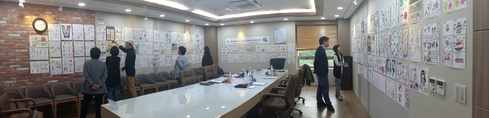 ▲서초구 청소년 건강만화 공모전 심사위원들이 출품작들을 살펴보고 있다. |