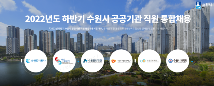 [로컬세계=김병민 기자]경기 수원시가 ‘2022년 하반기 수원시 공공기관 직원 통합채용’으로 6개 기관에서 총 22명을 선발한다.