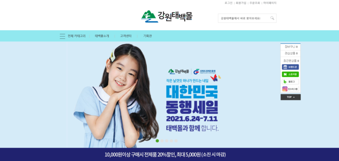 [로컬세계 박상진 기자]강원 태백시(시장 류태호)는 오는 24일부터 7월 11일까지 전국적으로 진행되는 ‘대한민국 동행세일’에 발맞춰 ‘강원태백몰’에서 20% 할인행사를 진행한다고 23일 밝혔다.