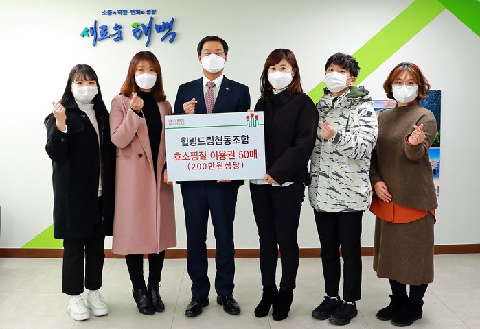 [로컬세계 박상진 기자]강원 태백시는 지난 15일 힐링드림협동조합에서 시에 희망2021 나눔캠페인 사랑의 이웃돕기 성금으로 200만원 상당의 효소찜질 이용권(4만원권 50매)을 기탁했다고 16일 밝혔다.