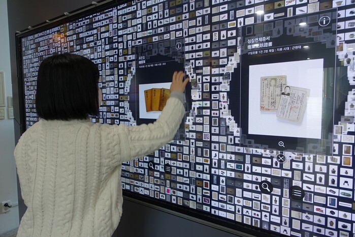 ▲ 한 시민이 인터렉티브 스마트 미디어월 아카이브를 체험하고 있다. 용인시 제공 |