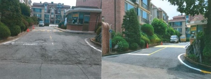 | ▲고양 아파트 단지 도로포장 전후 모습. 경기도 제공 |