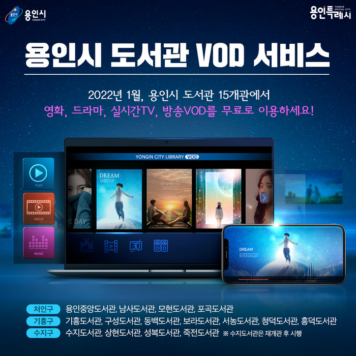 | ▲용인시가 2022년 1월부터 ‘웨이브 온 VOD 서비스’를 관내 15개 공공도서관에서 제공한다. |
