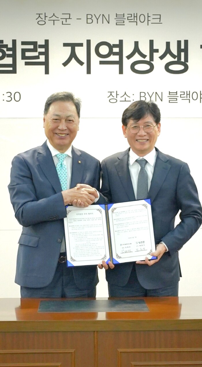 BYN블랙야크그룹(회장 강태선)이 산림 레포츠 기반 구축 및 활성화를 위해 장수군과 민관협력 업무협약을 체결했다.