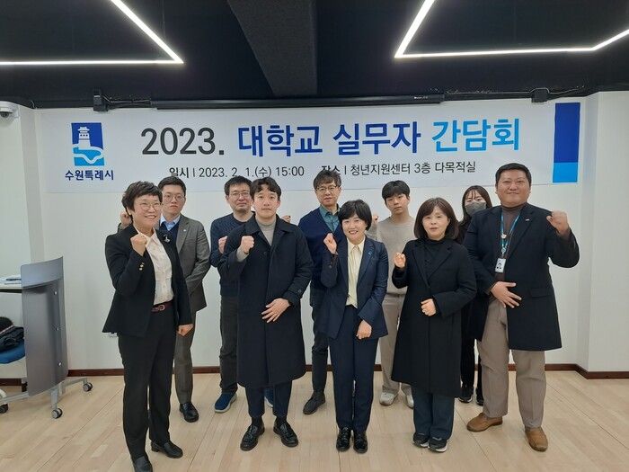 [로컬세계=김병민 기자]경기 수원시는 1일 청년지원센터에서 ‘2023 대학교 실무자 간담회’를 열고, 관내 5개 대학 실무자에게 수원시의 대학협력사업과 청년정책을 소개했다.