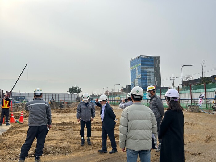 | ▲ 수원시·경기녹색환경지원센터 관계자들이 수원지역 건설 현장에서 기술지도를 하고 있다. 수원시 제공 |