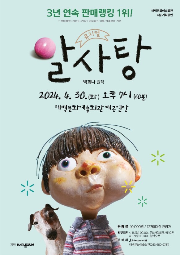[로컬세계=박상진 기자]강원 태백시는 오는 30일 오후 7시에 태백문화예술회관 대공연장에서 4월 기획공연 ‘알사탕’이 개최된다고 9일 밝혔다.