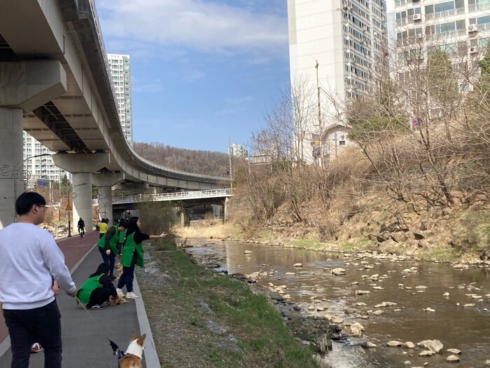 [로컬세계=김병민 기자]경기 용인특례시 기흥구 상하동 주민자치위원회가 지난 24일 상하동 행정복지센터 주변 상하천 수질개선을 위해 ‘EM흙공’ 던지기 봉사활동을 열었다고 26일 밝혔다.