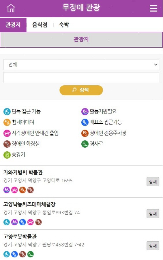 무장애 관광 지도는 고양시 전역의 주요 관광지, 음식점, 숙박업소 등 휠체어 이동이 편리한 장소를 표시한 지도다. 고양시 통합앱(app) 연계 모바일 콘텐츠와 종이 지도 리플릿 형태로 제작됐다.