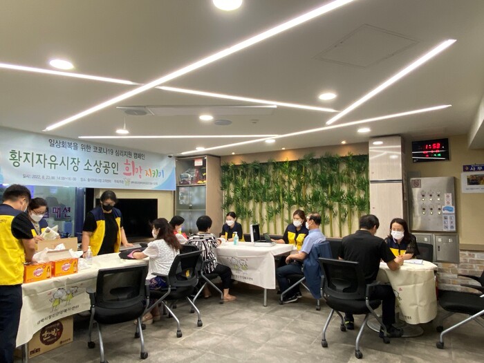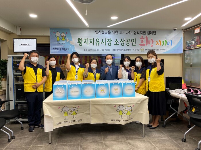 이번 행사는 코로나19 장기화로 정신적 피로감이 누적되어있는 황지자유시장 소상공인들의 코로나블루 극복을 위한 심리지원을 위해 추진됐다.