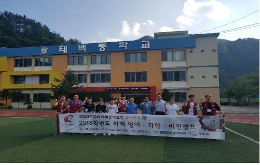 ▲고려대학교 사회봉사단 ‘2018 하계 영어‧과학‧비전캠프’ 방문 사진.(태백시 제공) |