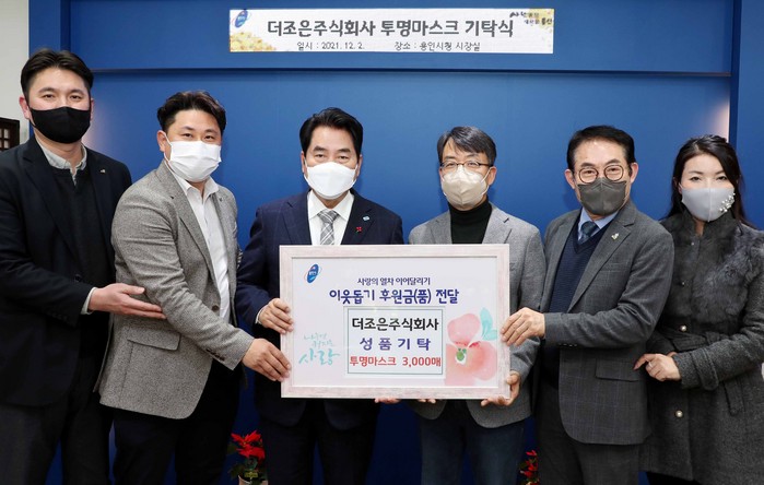 한편 지난 2일 용인시청에서 열린 마스크 기탁식에는 백군기 용인시장과 이경환 더조은주식회사 사장, 정성규 용인시사회복지협의회장 등이 참석했다. 이경환 사장은 이 자리에서 “우리 사회의 미래인 아이들을 위해 투명마스크를 기부했다”며 “마스크가 영유아 발달에 도움이 되기를 바란다”고 말했다.
