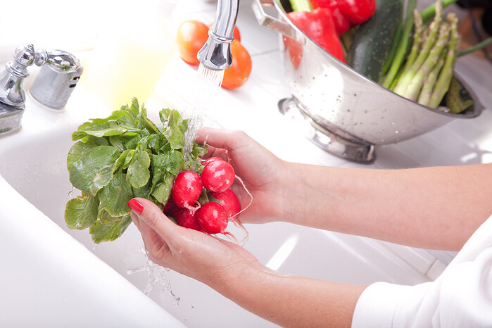 채소 및 과일의 식중독 예방을 위해서는 식재료 세척용으로 검증받은 제품을 이용해 5분 이상 물에 담근 후 3회 이상 깨끗하게 세척해야 한다.