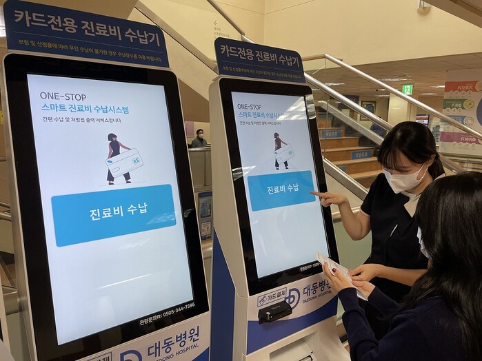▲대동병원 진료비 수납 및 처방전 발행 키오스크 도입. 대동병원 제공 |