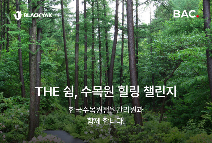 고기능성 글로벌 아웃도어 브랜드 블랙야크(회장 강태선)가 운영하는 국내 최대 규모 아웃도어 커뮤니티 플랫폼 ‘블랙야크 알파인 클럽(Blackyak Alpine Club, 이하 BAC)이 한국수목원정원관리원과 함께 ‘수목원 힐링 챌린지’를 진행한다.