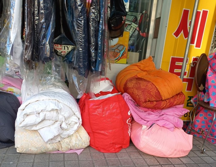 | ▲관내 한 세탁소에 맡겨진 이불들의 모습. 용인시 제공 |