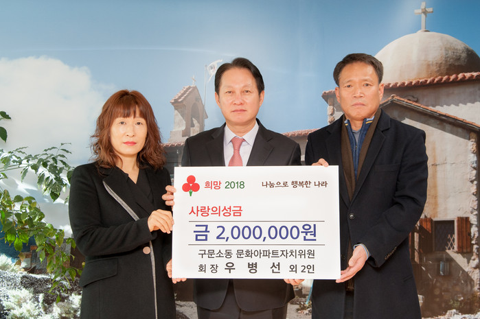 우병선 문화아파트자치위원회 회장은 "지난 2013년부터 모금활동을 통해 다양한 나눔 활동을 전개해 오고 있다"고 말했다.
