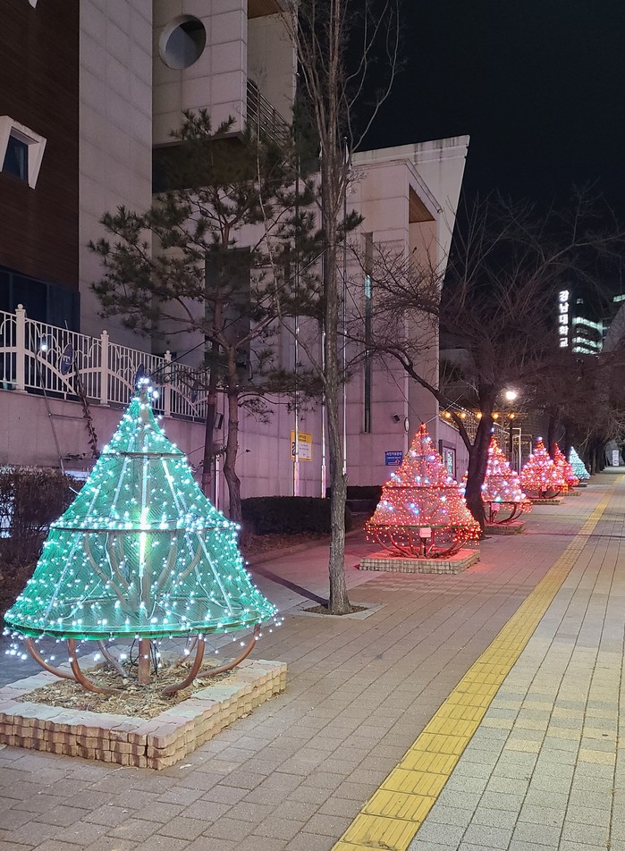 동은 코로나19로 지친 주민들에게 희망과 위로를 건네고자 청사 앞 인도에 2m 크기의 트리조명을 설치했다. 청사 주변 화단에도 경관조명을 설치해 어두운 밤거리를 밝혔다.