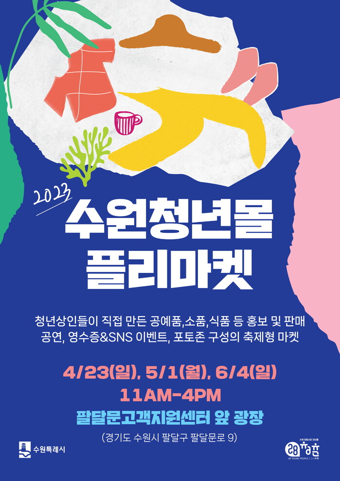 [로컬세계=김병민 기자]경기 수원시 청년 상인들이 직접 만든 공예품, 소품, 식품 등을 판매하는 ‘2023 수원청년몰 플리마켓(벼룩시장)’이 4월 23일, 5월 1일, 6월 4일 팔달문 고객지원센터 앞에서 열린다.