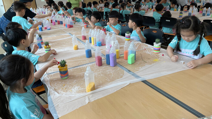 ▲ 용인특례시가 농촌테마파크에서 다양한 농촌활동을 체험한 단체를 모집한다. 사진은 지난해 한 어린이 체험단이 테라리움 만들기를 체험하는 모습. 용인시 제공 |