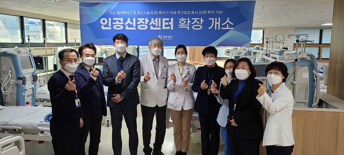 대동병원 인공신장센터는 만성신부전 등으로 투석을 요하는 지역 환자가 증가함에 따라 투석장비 14대를 추가 도입해 26명이 동시에 투석이 가능하도록 확장하였다. 또한 투석환자의 치료 만족도 향상을 위해 최신 혈액 투석장비와 정수시설을 도입하고 개인별 병상 TV를 설치하였으며, 격리 투석실을 별도로 마련하는 등 투석환자의 감염예방에도 신경을 기울였다.