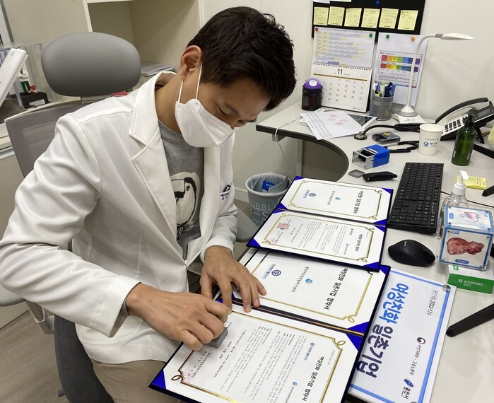 | ▲ 협약에 서명하고 있는 김동현 연세메디웰 내과 원장. 용인시 제공 |
