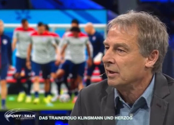 ▲ 최근 오스트리아 세르부스TV 스포츠 토크쇼에 출연한 클린스만. 서경덕 교수팀 제공 |
